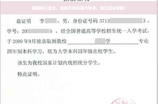银行流水作为个人财务管理的重要工具,不仅能帮助我们更好地了解个人财务状况、制定预算和财务计划,还能辅助我们实现财务目标,希望通过本文的介绍,读者能对银行流水有更深入的了解,并能将其运用到日常生活中,实现个人财务的自由和独立。