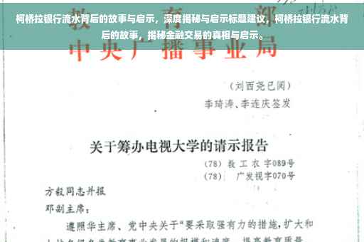 摘要:柯桥拉银行流水现象引起关注,背后隐藏着不为人知的故事。通过深入了解,揭示其背后的公司及相关操作,从中汲取启示。这些故事和启示提醒我们银行业务的透明度和规范性至关重要,以保障公众利益和金融安全。