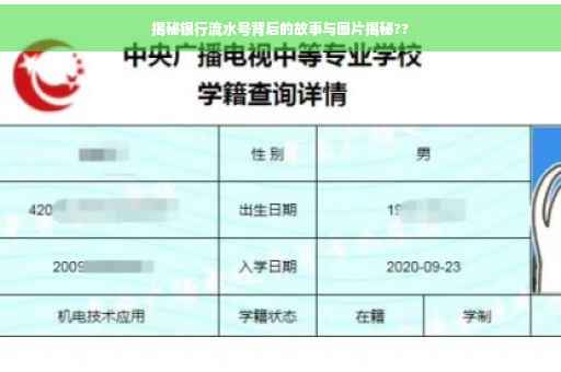 摘要:本文将揭示银行等流水号的背后故事。通过深入了解银行流水号的生成过程及其重要性,我们将探讨这些数字背后的含义以及它们如何影响个人和企业财务交易。还将附上银行流水号图片以作参考。本文旨在帮助读者更好地理解银行流水号的作用和重要性。