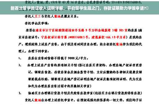 摘要:新西兰留学签证申请需要提供存款证明,这是留学生涯的重要一步。本文将详细解读收入证明的要点,帮助申请者顺利获得学签。了解存款要求,为留学生活做好充分准备,开启在新西兰的留学之旅。