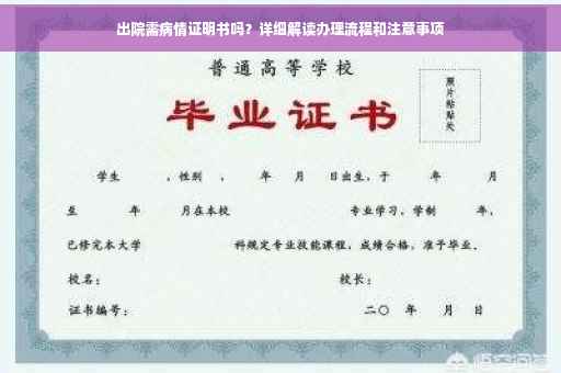 在日常生活中,我们可能会遇到需要出院的情况,这时,很多人会有一个疑问:出院需要病情证明书吗?本文将详细解析这一问题,并介绍办理出院手续的相关流程和注意事项,以帮助大家更好地了解并应对相关情况。