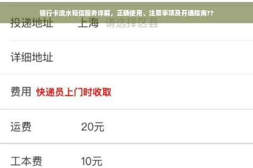 银行卡流水短信是银行为客户提供的一项便捷服务,旨在帮助客户实时掌握银行卡交易动态,本文详细介绍了如何正确使用银行卡流水短信及注意事项,希望广大读者能更好地利用这一服务,保障资金安全,客户在使用过程遇到任何问题,应及时联系银行客服寻求帮助。