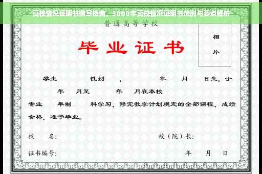 摘要:本文介绍了如何撰写一份高校情况证明书,内容涵盖3000字的书写要求。文章指出,高校情况证明书应包含学校基本情况、学校教学设施、师资力量、学科建设、科研成果、学生活动等方面的介绍,同时要求书写清晰、准确、简洁明了,以便读者能够快速了解学校情况。文章还强调了证明书的正式性和严谨性,要求使用规范的格式和语言,确保信息的真实性和可信度。