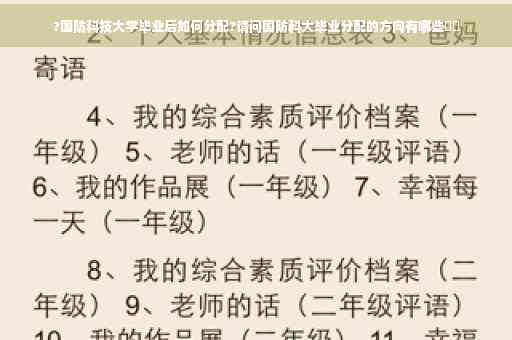 国防科技大学分配原则,有军籍的学生是按毕业成绩分配(70%左右的文化成绩+30%左右的综合成绩)。成绩好的优先选择兵种,部队。从成绩高低依次顺序选择。没有军籍的学生是自主就业。