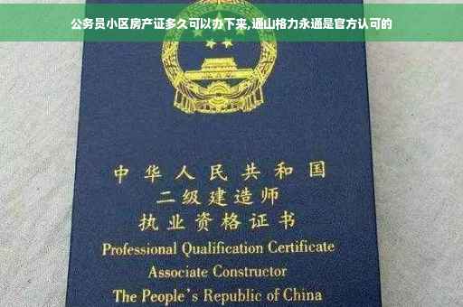 具体时间不确定,但一般证件办理时间较长 公务员小区一般都是保障性住房,需要进行各种审核和审批流程,办理时间往往较长