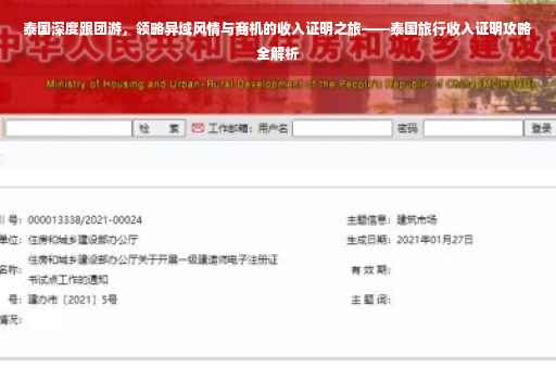 随着生活水平的提高,越来越多的人渴望探索异国风情,泰国,作为一个热门的旅游目的地,以其独特的文化、美丽的自然景观和丰富的旅游资源吸引着无数游客,我有幸加入泰国旅行团队,深度体验了泰国的魅力,并发现了一个充满商机的旅游市场,在此,我想与大家分享我的泰国旅行经历及所带来的收入证明。