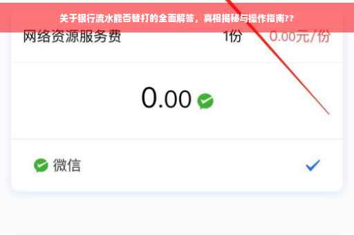 随着互联网技术的发展和数字化时代的来临,银行业务逐渐从线下转向线上,方便了广大客户的同时,也带来了一系列关于银行业务的疑问,关于银行流水是否可以替打的问题,是许多人在办理贷款、信用卡等金融业务时经常遇到的疑惑,本文将围绕这一问题,详细解答您的所有疑问。