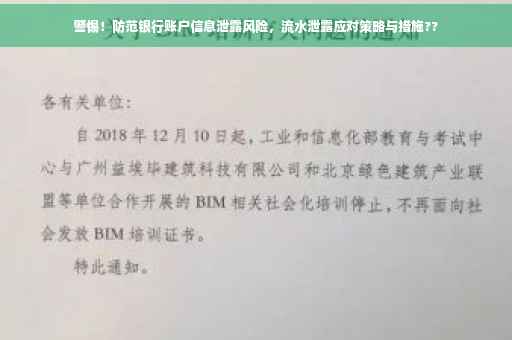 关于银行账户流水泄露的事件屡见不鲜,引发了社会各界的广泛关注,账户流水泄露不仅可能导致个人财产遭受损失,还可能引发个人隐私泄露等问题,这些事件背后往往隐藏着不法分子利用非法手段获取个人信息的行为,面对这一严峻形势,我们必须提高警惕,加强个人信息安全意识。