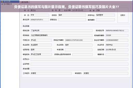 摘要:本指南介绍了如何撰写负债证明书以及图片展示的相关要点。负债证明书是证明个人或组织负债情况的书面文件,撰写时需清晰明了地列出负债方、债务金额、还款期限等信息。本指南还提供了丰富的负债证明书图片大全,以供参考和借鉴。通过阅读本指南,读者可以轻松地完成负债证明书的撰写和展示。
