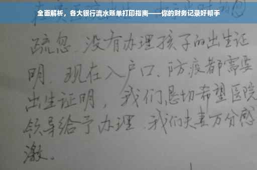 在现代社会,随着金融业务的不断发展和个人理财需求的日益增长,银行流水账单在我们的日常生活中扮演着越来越重要的角色,无论是申请贷款、办理信用卡,还是进行财务审计,一份清晰、完整的银行流水账单都是必不可少的证明材料,为了更好地帮助大家掌握个人财务记录,本文将为你详细介绍各大银行的流水账单打印方法。