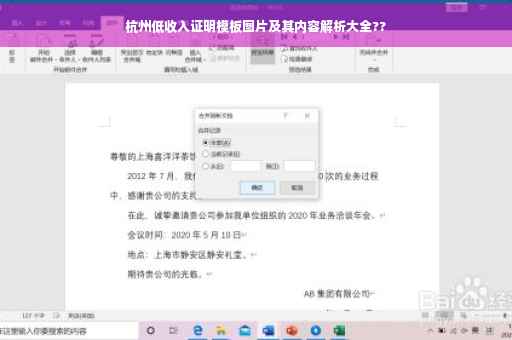 摘要:关于杭州低收入证明模板图片及其相关内容解析,本文提供了杭州低收入证明模板图片大全,包括各种格式和样式的图片。通过本文,读者可以了解低收入证明的具体内容和格式要求,以及如何正确填写和使用这些模板。文章旨在帮助需要证明低收入的杭州居民快速获取相关模板,并正确准备所需材料。