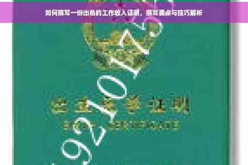 通过本文的介绍,相信您已经了解了如何撰写一份出色的工作收入证明,在实际撰写过程中,我们需要明确目的和内容、遵循规范格式、突出关键信息、注意语言和风格,并结合实际案例进行具体解析,希望本文能对您有所帮助,让您轻松撰写出符合需求的工作收入证明。
