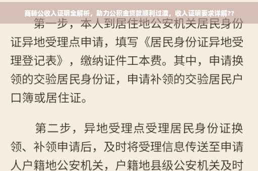 随着国家政策的调整,商业贷款转公积金贷款(简称商转公)逐渐受到广大市民的关注,对于众多家庭而言,商转公能够显著减少贷款利息支出,减轻还款压力,而在申请商转公的过程中,收入证明作为评估申请人还款能力的重要依据,其重要性不言而喻,本文将详细介绍商转公收入证明的相关内容,帮助大家更好地了解和准备材料。