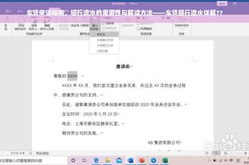 在当今社会,购车已成为许多家庭的重要需求,对于许多人来说,全款购车并不现实,因此车贷成为了实现购车梦想的重要途径,在银行申请车贷时,银行流水作为审核的重要依据之一,其重要性不言而喻,本文将详细解读车贷与银行流水的关系,帮助申请者更好地了解申请过程中的关键要素。
