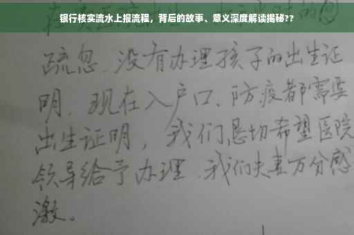 银行核实流水上报不仅是保障金融市场稳健运行的重要环节,也是个人和企业了解自身财务状况、做出明智决策的关键步骤,我们应当重视这一环节,确保金融市场的健康运行。