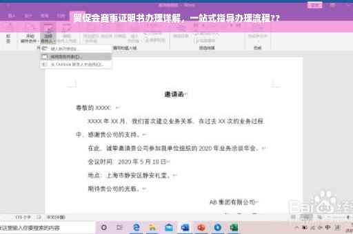 摘要:本文将详细介绍贸促会商事证明书的办理流程。内容包括办理所需的材料、步骤和注意事项等。想要了解贸促会证明书如何办理的企业和个人,通过阅读本文,将能够轻松掌握办理商事证明书的方法和要点。