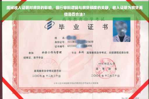 摘要:本文将探讨收入证明与房贷之间的关系,揭示银行审批背后的逻辑。文章将解答收入证明如何影响房贷额度,并探讨收入证明为房贷额度的两倍是否合法的问题。通过本文,读者可以更好地理解银行对房贷审批的考量因素,以及如何合理利用收入证明来获得更高的房贷额度。