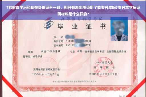 因为根据《普通高等教育自学考试实施办法》规定,只要符合该专业教育部门制定的专升本条件并在考试中取得合格分数线即可,前置学历和身份证不一致并不影响。