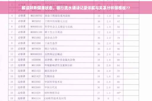 在当今数字化时代,银行业务日益便捷化,银行流水通话记录作为个人或企业经济活动的重要记录,越来越受到人们的关注,你是否曾经疑惑过如何解读这些流水记录,从而了解自己的财务健康状态?本文将为你详细解读银行流水通话记录,助你轻松掌握个人财务状况。