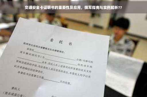 随着交通事业的飞速发展,交通安全问题日益凸显,为了加强交通安全管理,保障人民群众的生命财产安全,交通安全卡证明书应运而生,本文将全面介绍交通安全卡证明书的作用、内容、申请流程以及使用注意事项,旨在提高公众对其的认知度,共同营造安全、和谐、文明的交通环境。