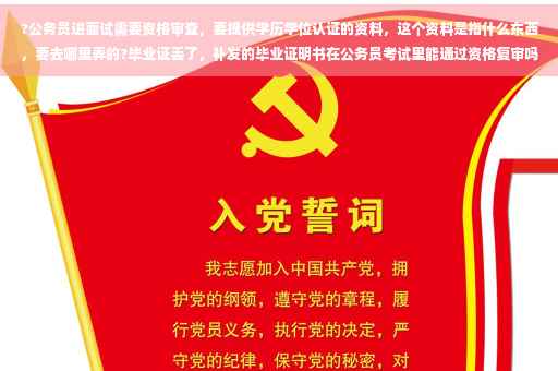 我也是今年公考进面,题主未说明自己是否是应届毕业生,那么我从两个情况来答: 已经毕业的,资料有学位证,毕业证书和在学信网上注册并打印的学籍证明(这个需要缴纳1块钱)以及准考证, 对于尚未发放毕业证、学位证书的高校毕业生由学校教务部门出具相关证明,具体你可以主动联系自己的导员具体了解,导员对于这些东西是再熟悉不过的,这样比较可靠。