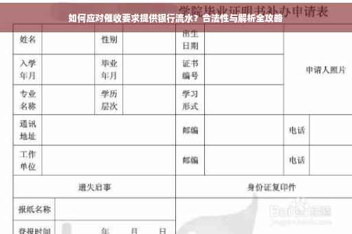 催收要求提供银行流水是借贷过程中的常见情形,借款人应以谨慎的态度应对,在确保对方身份合法、了解相关法律法规的前提下,保护个人隐私,与借款机构保持良好沟通,并寻求合理解决方案,提高警惕,防范诈骗风险,希望通过本文的解析,大家能更好地应对催收要求提供银行流水的情况,关键词:催收、银行流水、借贷、隐私保护、法律援助、沟通策略、加密手段。