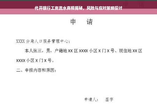 随着社会的快速发展,银行业务日益繁多,其中工资流水作为个人经济生活中的重要证明,越来越多地被用于贷款、签证、购房等各类场合,在某些特殊情况下,代开银行工资流水这一现象逐渐浮出水面,本文将围绕代开银行工资流水展开讨论,揭示其背后的真相、风险,以及个人和企业应如何正确应对。