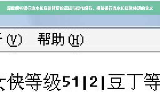 摘要:银行流水扣贷款体现指的是通过银行流水记录来扣除贷款的行为。本文深度解析了这一操作背后的逻辑与细节,解释了银行如何通过流水记录来核实借款人的收入情况,进而决定是否批准贷款申请。本文还介绍了银行流水扣贷款的具体操作方式,包括扣款时间、扣款金额等细节。通过本文,读者可以更好地了解银行流水扣贷款的相关内容。