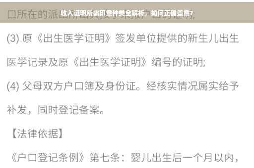 在开具收入证明时,需要使用公司公章、财务章、部门章和名章等不同类型的章,不同的场景和需求可能需要不同类型的章,在开具收入证明时,应根据实际情况选择合适的章,并确保章的真实性和合法性,还需要注意收入证明内容的真实性,以免影响个人信誉度,希望通过本文的介绍,能够帮助大家更好地了解收入证明中的用章问题。