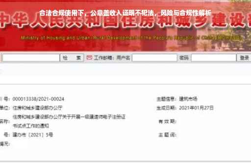 在现代社会中,随着就业市场的日益竞争,越来越多的人开始关注自己的收入证明,收入证明作为个人经济能力的重要体现,对于求职、贷款等方面具有举足轻重的作用,在使用公章盖收入证明时,我们必须明确其合法合规性,避免陷入违法的误区,本文将详细解析公章盖收入证明的相关法律问题,并探讨如何合法合规地使用公章。