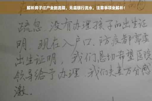 近年来,随着房地产市场的不断发展和政策的不断调整,房子过户的流程也在逐渐变化,尤其是在金融科技的推动下,许多传统的手续正在被简化,过户时不再完全依赖银行流水这一变化,为广大购房者带来了极大的便利,本文将详细介绍这一新变化下的房子过户流程,并提醒大家在过户过程中需要注意的事项。