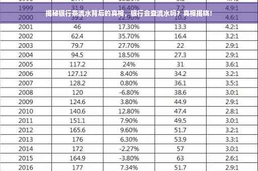 摘要:近期揭露的银行茶流水背后的真相引发关注。银行确实会查流水,以确保资金安全和合规操作。真相究竟如何尚待进一步揭示,需要更多信息和深入调查。公众应保持警惕,同时呼吁相关部门加强监管,确保银行体系的透明度和公正性。