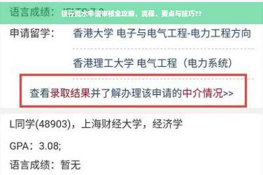 若银行在审核过程中需要补充材料或有其他疑问,需及时配合并提供相关信息,在申请过程中保持电话畅通或关注短信通知,以便及时接收银行的通知,若因沟通不畅导致审核延误或失败,后果自负,请务必注意这一点!同时也要注意以下几点:首先是要确保自己的账户状态正常且没有异常交易记录;其次是要确保自己的个人信息准确无误;最后是要遵守银行的各项规定和要求以确保顺利申请和审核通过,总之在申请审核银行流水的过程中要保持耐心和细心以确保顺利完成任务,另外也要注意保护自己的个人信息和账户安全避免泄露和被盗用等情况发生,五、总结回顾本文详细介绍了如何申请审核银行流水从了解银行流水开始到选择合适的银行渠道填写申请表提交申请并等待审核等步骤都进行了详细的阐述同时也强调了注意事项希望读者在阅读本文后能够了解并掌握如何正确申请审核银行流水,在实际操作中如果遇到问题可以通过咨询银行工作人员或其他专业人士寻求帮助以确保顺利完成任务,最后再次强调保护个人信息和账户安全的重要性希望读者能够时刻保持警惕避免不必要的风险发生,六、拓展阅读推荐为了更好地帮助读者了解银行流水及相关金融知识本文推荐以下拓展阅读资料:1.《个人银行账户管理指南》全面了解个人银行账户管理相关知识;2.《企业银行账户操作指南》掌握企业银行账户操作技巧;3.《银行业务办理实战攻略》深入了解银行业务办理流程及注意事项;4.《金融基础知识百科》全面了解金融基础知识提升金融素养,以上推荐资料可在各大书店或网上书店购买或下载希望读者通过阅读拓展资料更好地了解金融知识提升个人或企业的财务管理水平,总之本文旨在为读者提供关于银行流水申请审核的全面攻略希望读者能够从中受益并在实际操作中顺利完成任务,同时也要注意保护个人信息和账户安全遵守金融规定确保个人和企业的财务安全。
