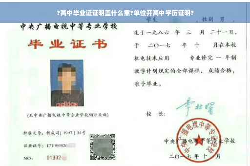 高中毕业证上有主管教育部门的验证钢印或盖章。中国的普通高中毕业证由省级教育主管部门监制并实施管理。证书文本由授证学校签发(学校盖章及校长印章或签名),报上级主管教育部门备案并在毕业生照片处加盖验证钢印或印章。