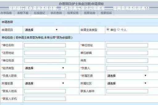 摘要:本文详细介绍了常熟银行流水查询系统,包括其操作指南和常见问题解答。通过访问常熟银行流水查询系统官网,用户可以轻松查询银行流水信息。本文旨在帮助用户了解该系统,并指导其正确操作,解决在使用过程中可能遇到的问题。