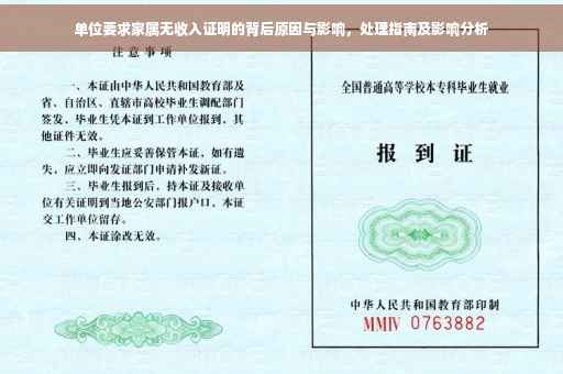 摘要:一些单位要求员工家属提供无收入证明,其背后原因可能与员工福利、财务审核等有关。此举对员工家庭隐私及生活可能产生一定影响。面对这种情况,员工应积极配合提供相关证明,同时单位也应尊重员工隐私。此举的影响还需进一步观察,并希望单位能够平衡员工福利与隐私保护之间的关系。