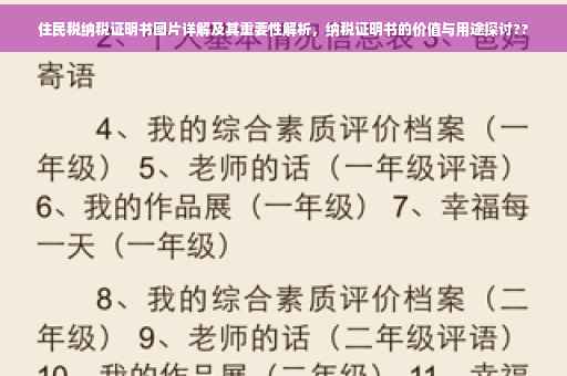 摘要:本文将介绍住民税纳税证明书图片及其重要性。通过展示住民税纳税证明书图片大全,让读者了解这一证明文件的基本外观和样式。本文将详细解析住民税纳税证明书的重要性,包括在财务、法律和社会方面的应用,帮助读者认识到这一文件在生活中的重要作用。