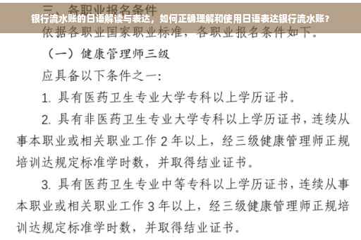 摘要:本文介绍了银行流水账的日语表达及其解读。银行流水账在日语中称为“銀行對账单”或“銀行交易明细账”,是指银行记录客户账户资金往来的清单。通过银行流水账,可以了解账户的资金流动情况,包括收入、支出、转账等交易记录。对于需要进行跨境交易或管理个人财务的人来说,了解银行流水账的日语表达及解读十分重要。