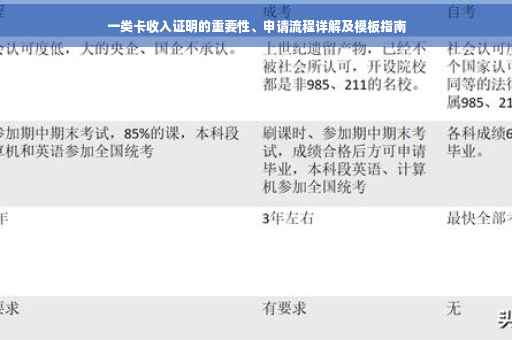 随着金融行业的快速发展,银行卡已经成为我们日常生活中不可或缺的一部分,一类卡作为功能最全面、使用最广泛的银行卡之一,其收入证明功能尤为重要,本文将详细介绍一类卡收入证明的功能、作用、申请流程以及注意事项,并补充具体的使用场景,以帮助广大读者更好地了解和利用这一功能。