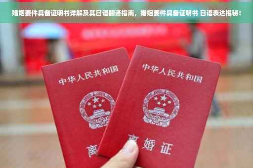 婚姻要件具备证明书是婚姻法律流程中的关键文件之一,用于证明婚姻双方具备合法结婚的资格与条件,在现代社会,随着国际交流的增多,了解不同国家的婚姻制度及相关法律文件变得尤为重要,本文将全面介绍婚姻要件具备证明书的内容及其功能,并深入探讨其日语翻译的相关问题。