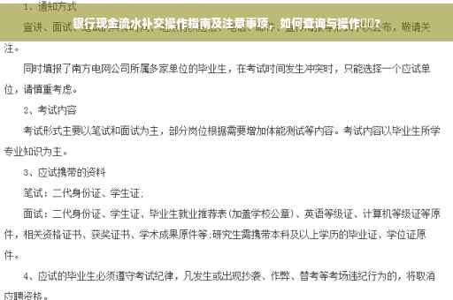 在现代社会,银行业务日益繁忙,现金流水是银行运营中的重要环节,由于各种原因,有时客户可能需要补交现金流水,本文旨在为广大银行客户介绍银行补交现金流水的相关知识,包括操作指南及注意事项,以帮助大家顺利完成补交流程。