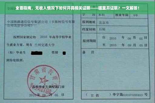 本指南全面解析了没有收入时如何开具相关证明的问题。详细介绍了在没有收入的情况下,应该去哪里开具证明,包括向所在单位财务部门、街道办事处或乡镇政府等申请开具收入证明的步骤和注意事项。本指南旨在帮助有需要的人解决开具收入证明的难题,方便快捷地获取所需证明。无论你是因为求职、贷款或其他原因需要证明自己的收入状况,都能从中找到答案。