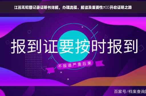 当今社会,随着法治建设的日益完善,个人信用体系建设逐渐受到广泛重视,无犯罪记录证明书,作为个人品行的重要证明,在求职、留学、移民及法律诉讼等领域扮演着关键角色,本文将为您深入解读江苏无犯罪记录证明书,并详细指导您如何办理及其重要性。