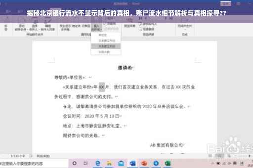 网友反映在使用北京银行流水账单时遭遇问题,发现部分交易记录未显示,引发公众对银行流水账单真实性的质疑,我们来深入探讨北京银行流水不显示的原因及应对方法。<