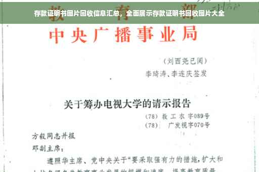 摘要:本文介绍了关于回收存款证明书图片的相关信息,包括图片大全等内容。文章简短明了,提供了有关存款证明书回收的一般性概述,方便用户快速了解相关主题。