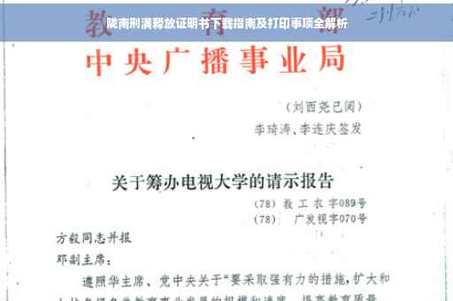 摘要:本文介绍了陇南刑满释放证明书的下载及相关事项详解。文章指出,刑满释放证明书是证明个人服刑情况的重要文件,需要妥善保管。本文详细阐述了下载打印陇南刑满释放证明书的流程,包括相关事项和注意事项,以帮助需要的人快速了解并顺利获取证明书。