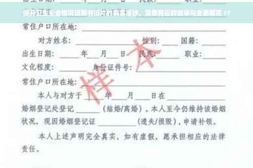 摘要:本文揭示卫生安全情况证明书图片的真实面纱,深入了解其背后的故事。通过提供卫生安全情况证明书图片大全,帮助人们获取更全面的卫生安全信息。文章强调关注卫生安全的重要性,并呼吁大家共同维护健康的生活环境。