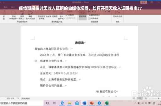摘要:疫情期间,许多人的生活和工作受到严重影响,一些人甚至面临无收入证明的困境。本文将介绍自媒体观察下的疫情期间临时无收入证明的情况,探讨如何开具临时无收入证明。文章旨在帮助受影响的个人应对困境,并提供实用的建议和解决方案。