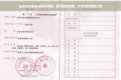 便是关于阳后肺炎疾病证明书的相关内容,希望通过这篇文章,大家能对阳后肺炎有更深入的了解,提高防范意识,保护自己和家人的健康。