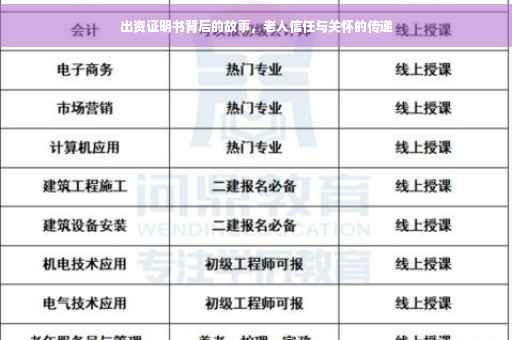 摘要:,,本文讲述了一位老人通过出资证明书表达信任与关怀的故事。这份出资证明书不仅是财务交易的证明,更是情感交流的载体。本文将简要介绍如何撰写这份证明书,强调其背后的深层意义,展现老人之间的信任与关怀。这篇文章旨在传递一种情感价值,让人们认识到出资证明书背后所蕴含的人文关怀。